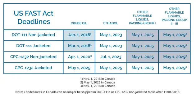 Table 2: Deadlines for Compliance with the FAST Act per the Railroad Supply Institute[1]